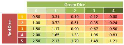 So if you're normally dealing 0.31 damage with 1 red dice vs 1 green dice, then that doubles when you roll 2 red dice vs 2 green dice, right? So now you're dealing an average of 0.62 damage with each shot, right?